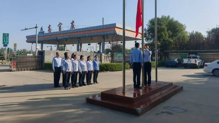 为庆祝中华人民共和国成立76周年,弘扬爱国精神,凝聚奋进力量,10月1日清晨,固安南收费站举行了以“国旗飘扬聚合力,砥砺奋进新征程”为主题的国庆升旗仪式。[详细]